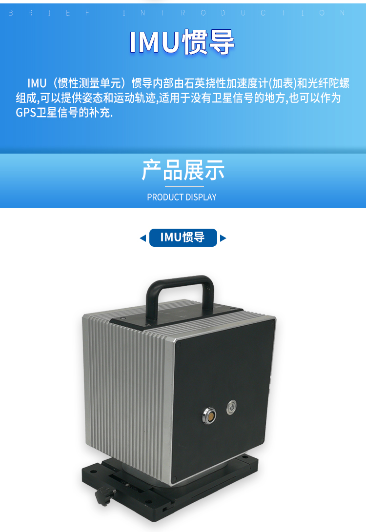 内部由石英挠性加速度计(加表)和陀螺仪组成。加速度计测量载体的加速度信号,光纤陀螺测量载体的角速率信号。惯性测量单元可以不依靠外界信息测量物体在三维空间中的角速度和加速度,并以此解算出物体的姿态。IMU(Inertialmeasurementunit)惯性测量单元是惯导的核心组成部分。适用于盾构导向、煤矿巷道导向,也可以作为GPS卫星信号的补充。